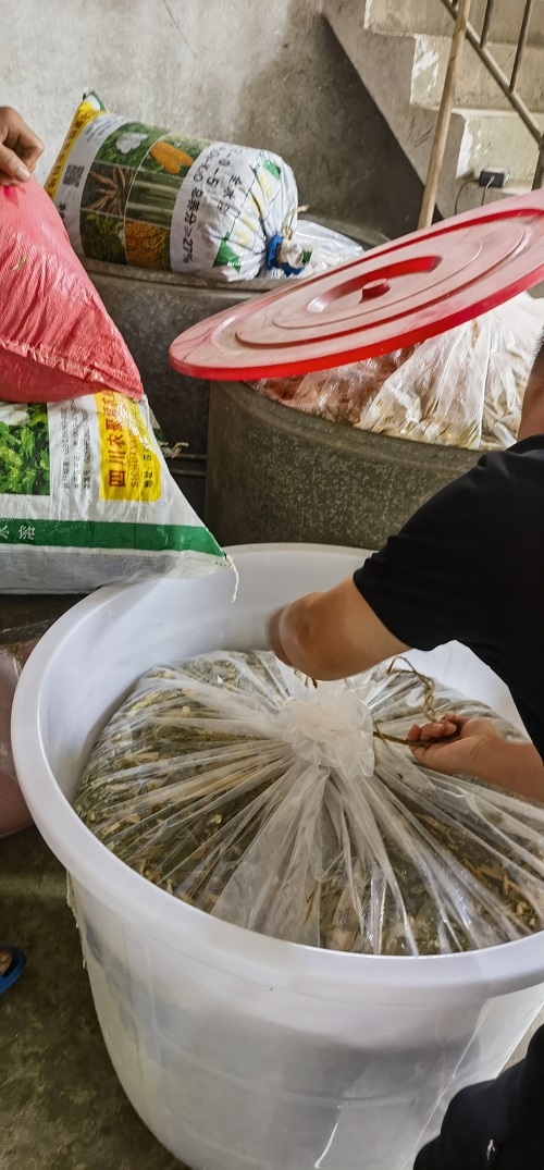 先把要發(fā)酵的原料粉碎或鍘成小片。99多功能飼料發(fā)酵劑0.5-1包與1噸待發(fā)酵原料,含淀粉類的飼料100公斤(比例約為原料的5%以上,如玉米、大米、紅薯、淀粉均可)、食鹽2公斤(含有足量食鹽的原料則不添加,食鹽不能放在激活的菌種中,要直接撒在發(fā)酵料上或添加的清水中)。先把發(fā)酵劑與淀粉類飼料昆合后再撒到發(fā)酵的物料中混合均勻,含水量調(diào)節(jié)到55%-60%左右,壓實(shí)密封發(fā)酵7天左右有濃郁香味時(shí)即可使用。發(fā)酵后的料適口性、營養(yǎng)、消化率較未發(fā)酵前有明顯提升。發(fā)酵后的飼料根據(jù)不同動物與不同飼養(yǎng)周期按照10%-50%與該動物其他價(jià)飼料混合后飼喂。這樣操作可節(jié)45%以上的飼料成本。
