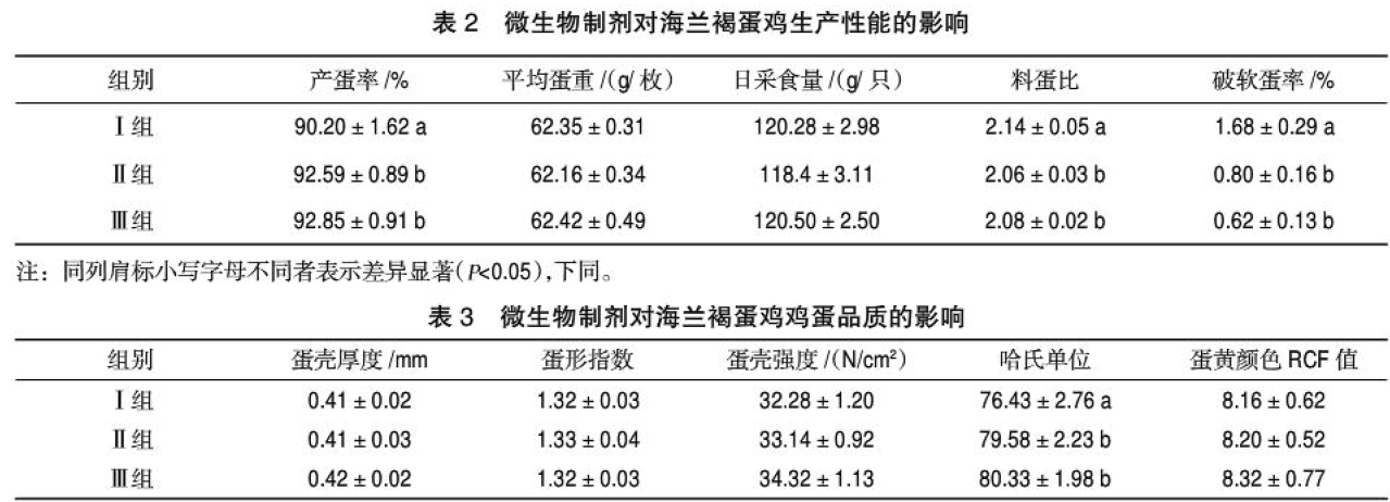 2.2微生物制劑對雞蛋品質的影響。