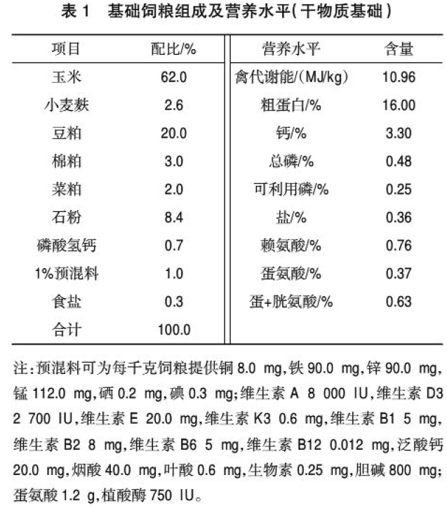 試驗雞斜坡籠養(yǎng),每天飼喂2次,自由采食和飲水。試驗期間正常防疫,每天上午9:30撿蛋。晚上補光,恒定16h光照。預飼7d,正式試驗60d。試驗場地為某原種場示范養(yǎng)雞場。