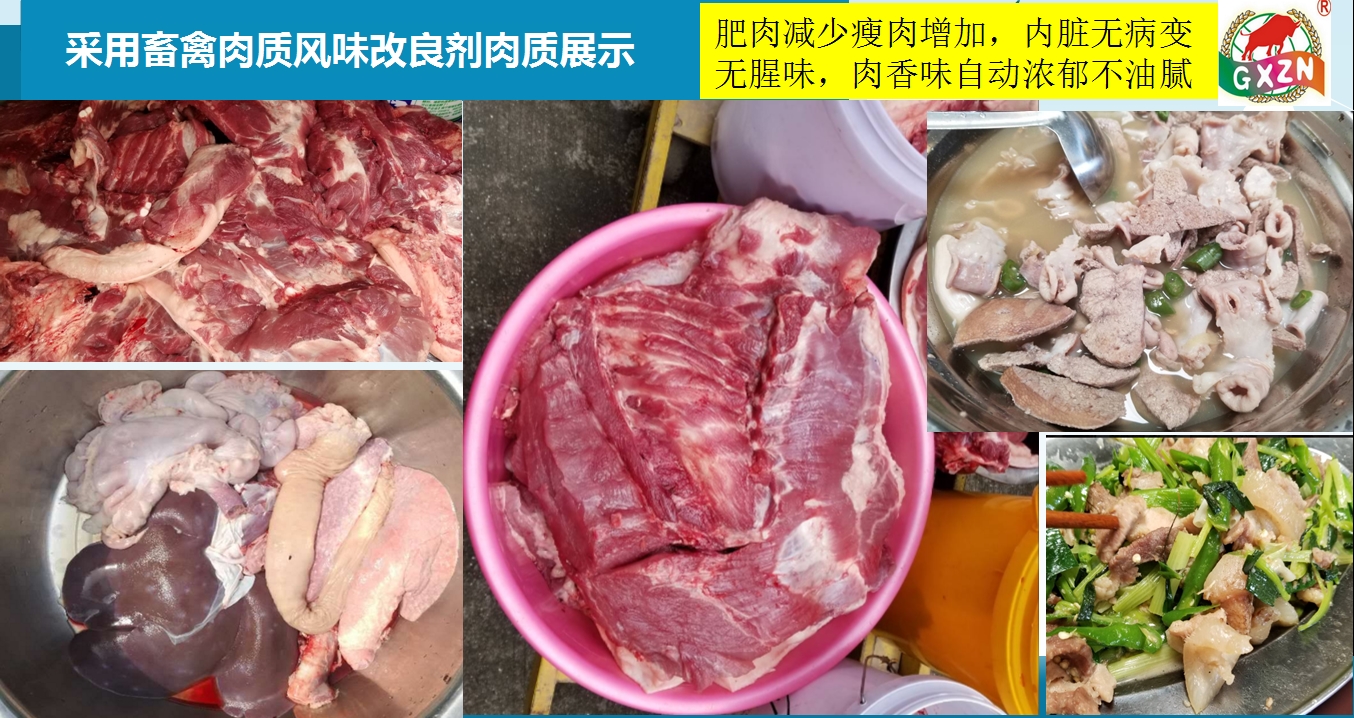 這個產(chǎn)品除能夠清除影響口感嚴重的動物體內(nèi)殘留抗生素等外(現(xiàn)在肉質(zhì)有明顯腥臊味但烹飪后肉香味不濃郁都是因為抗生素等嚴重導(dǎo)致的),關(guān)鍵是能夠明顯提升肉質(zhì)肌肉中游離氨基酸、油酸、亞油酸等,且使提升肌纖維的保水能力(肉質(zhì)變得緊實),這些都是明顯改善口感與香味的關(guān)鍵要素。比較其他方法操作更簡單、成本更低、速度更快、效果更佳直觀(數(shù)據(jù)和色香味口感),因此更值得采用。