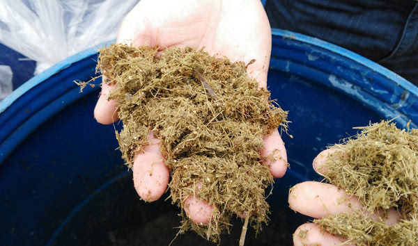 →→將青綠牧草、秸稈等通過機(jī)器粉碎(原則上越細(xì)越好),每2噸粉碎的牧草秸稈等加入50-100公斤糖蜜(糖廠的下腳料,添加量越多效果越好)、“99多功能飼料發(fā)酵劑”1包(市場價格約25元/包),混合含水量在55%-70%均可,裝入池、缸、袋等容器中壓實(shí)并進(jìn)行密封發(fā)酵。7-15天有濃郁的香醇味即可飼喂,喂多少取多少并馬上進(jìn)行密封。