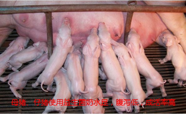 1.仔豬使用益生菌:在仔豬出生就灌服數天的益生菌(如采用產品“超強乳酸菌”按1:10溫水激活后使用)10毫升,防治仔豬腹瀉與提高成活率效果顯著,效果遠超抗生素類產品;如果是從仔豬開始采食后一直使用,一周內就看到效果,不僅腹瀉降低顯著,還有效提高成活率,且長勢快速。一只從出生到2個月的仔豬益生菌所花費的成本不足0.5元,節(jié)約至少1.5公斤的飼料.