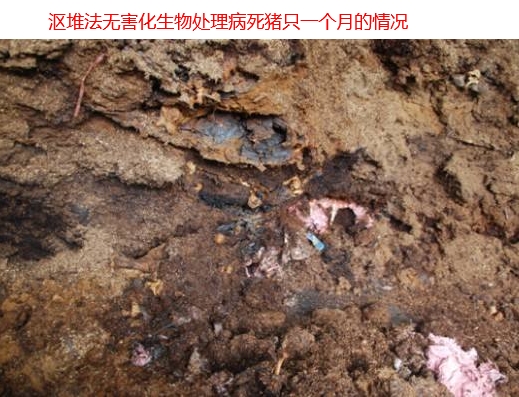 病死豬可以直接埋入豬糞中發(fā)酵,由于新型高溫菌種的因素,在糞堆底部撒一層10里面厚放了菌種的鋸末和少量玉米粉,死豬放在鋸末上,四周堆放新鮮豬糞并連同死豬上面灑鋸末辦好的菌種,最后在上面覆蓋豬糞不低于80公分,大的死豬建議1-1.2米。在豬糞中根據(jù)大小不一樣1-3月死豬就變成了肥料(只剩下骨頭),期間不會(huì)產(chǎn)生臭味出來(lái);個(gè)頭大的豬由于數(shù)量不多還可以選擇距離豬欄稍遠(yuǎn)的山林深埋或丟入化尸池處理(化尸池中加入微生物“高熱腐熟菌”);如果有集中處理的地方,直接交給集中處理中心即可,還可以領(lǐng)到80-300元的補(bǔ)貼。