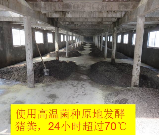 這都是方法和菌種的原因。隨著研發(fā)的進(jìn)步,廣西助農(nóng)畜牧科技有限公司專業(yè)生產(chǎn)微生物制劑的下屬企業(yè)——南寧微瑞生物科技有限公司研發(fā)出了針對豬糞營養(yǎng)而設(shè)計的耐高酸堿度、高溫發(fā)酵菌種——豬糞專用高溫菌發(fā)酵劑,可以在24小時產(chǎn)生高達(dá)75℃左右的高溫。結(jié)合稍微的技術(shù)措施,即可解決在高架網(wǎng)床下面原地發(fā)酵豬糞的目的。具體操作如下: