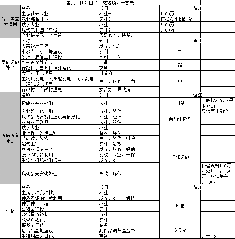 2017年新政策:國家補(bǔ)助項(xiàng)目(生態(tài)豬場)一覽表,最高補(bǔ)貼1000萬元