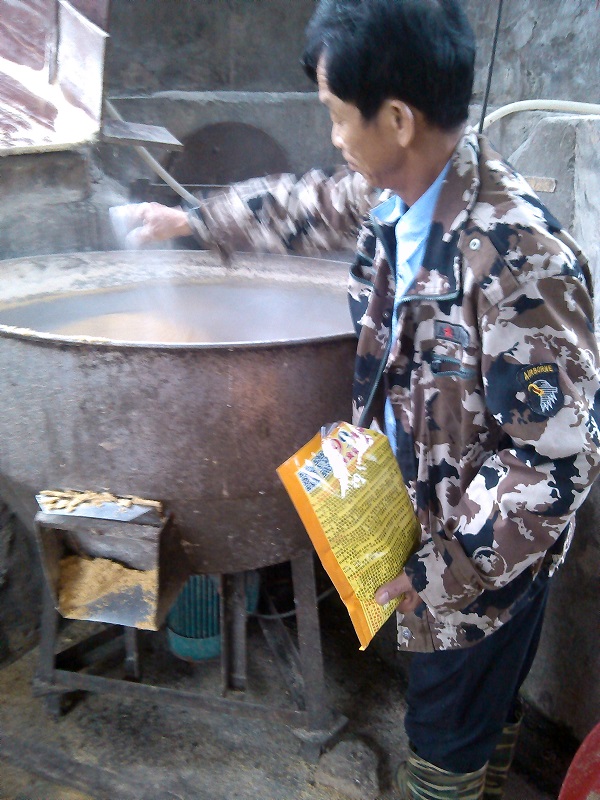 1.采用濕飼料喂豬最好添加益生菌,如“養(yǎng)豬專用復(fù)合益生菌”(含有枯草芽孢桿菌、丁酸梭菌、乳酸菌等12種之多的益生菌及復(fù)合酶制劑相結(jié)合的產(chǎn)品,市場價格約35元,拌料2噸,先放益生菌到料桶中,加入水,再倒入飼料,可以半小時后飼喂,但最后放置6-12小時后飼喂,形成輕度發(fā)酵),酶+菌的融合行預(yù)消化更有利于提高飼料的消化吸收率,降低料耗,節(jié)約飼料成本,還可以快速降低豬場的臭氣、氨氣80%以上,減少疾病的發(fā)生。