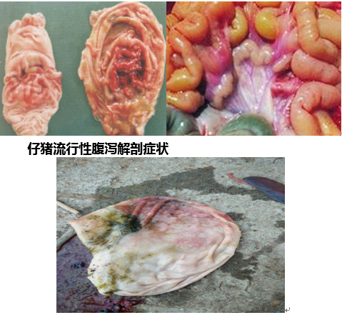2、臨床癥狀:潛伏期一般為5—8天,人工感染潛伏期為8—24小時(shí)。主要的臨床癥狀為水樣腹瀉,或者在腹瀉之間有嘔吐。嘔吐多發(fā)生于吃食或吃奶后。癥狀的輕重隨年齡的大小而有差異,年齡越小,癥狀越重。一周齡內(nèi)新生仔豬發(fā)生腹瀉后3—4天,呈現(xiàn)嚴(yán)重脫水而死亡,死亡率可達(dá)50%,最高的死亡率達(dá)100%。病豬體溫正?;蛏愿撸癯劣?,食欲減退或廢絕。斷奶豬、母豬常呈精神萎頓、厭食和持續(xù)性腹瀉大約一周,并逐漸恢復(fù)正常。少數(shù)豬恢復(fù)后生長(zhǎng)發(fā)育不良。肥育豬在同圈飼養(yǎng)感染后都發(fā)生腹瀉,一周后康復(fù),死亡率1%--3%。成年豬癥狀較輕,有的僅表現(xiàn)嘔吐,重者水樣腹瀉。