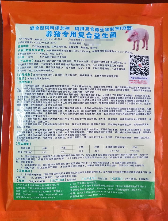 2.選用品牌產品用于養(yǎng)豬業(yè)生產:當前市場上動物微生態(tài)制劑產品多而亂,標準不統(tǒng)一,質量不穩(wěn)定,作用效果差,不同的生產企業(yè)生產的微生態(tài)產品質量相差很大。有的養(yǎng)殖場反映,使用微生態(tài)制劑與不使用一個樣,沒有什么效果。有一些企業(yè)生產工藝簡單,發(fā)酵技術、真空干燥技術和微膠囊技術不過關,活菌數極低,雜菌很高,打著各種旗號標榜產品質量,以低價格去占奪市場。廣大養(yǎng)殖戶一定要認真調查、分辨好壞。選擇信譽好、創(chuàng)新能力強、科技含量高,售后服務好的品牌企業(yè)購買產品,以免影響?zhàn)B殖業(yè)的健康發(fā)展,造成重大的經濟損失。