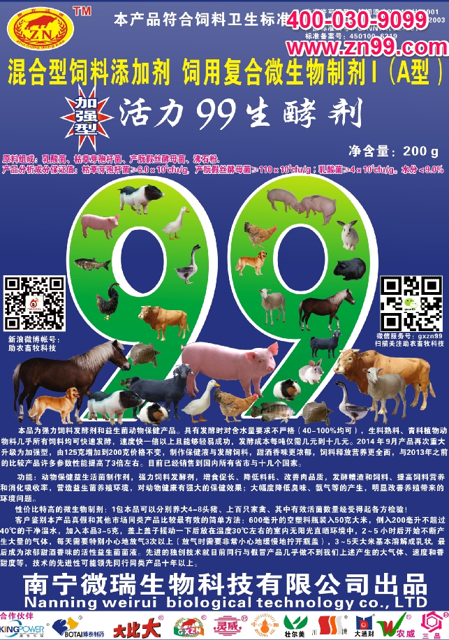 在大多數(shù)情況下,由于這些產(chǎn)品中抗菌素添加量小,所以反而與活力99生酵劑和粗飼料降解劑中的益生菌有協(xié)同作用,沒(méi)有抑制作用,少數(shù)情況下如治病的時(shí)候,用治療級(jí)的大量的抗菌素時(shí),才會(huì)有影響,但也只是單方面的單向影響,即抗菌素對(duì)活力99生酵劑中的益生菌的影響,反過(guò)來(lái)則益生菌對(duì)抗菌素的影響極小,或者說(shuō)可能對(duì)抗菌素的效果有影響。因此在動(dòng)物治病使用大劑量抗生素期間暫停使用即可。
