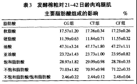 2.1發(fā)酵棉粕對(duì)2l一42日齡肉雞胸肌主要脂肪酸組成的影響