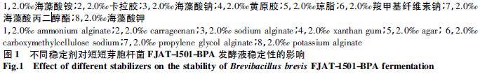 2.1.1 穩(wěn)定劑對短短芽胞桿菌FJAT-1501-BPA 膠懸劑的影響