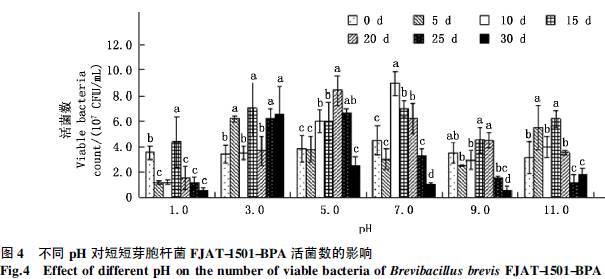 1.2.3 不同pH 對短短芽胞桿菌FJAT-1501-BPA 保存特性的影響