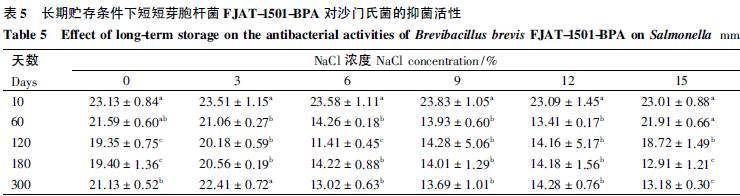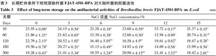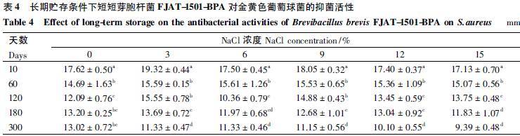 1.2.2 不同NaCl 濃度對短短芽胞桿菌FJAT-1501-BPA保存特性的影響