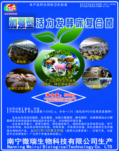 先將加強(qiáng)型活力發(fā)酵床復(fù)合菌包裝中的200克粉劑(高濃度菌種)與300克多糖性復(fù)合菌種營(yíng)養(yǎng)基放入20公斤約35℃的溫水中,在塑料容器中激活24小時(shí)以上,我們稱之為激活菌液,密封保存并且推薦是15天內(nèi)用完,備用;墊料采用無霉變鋸末可以直接使用,如果使用谷殼或速生桉樹等有一定毒素的鋸末作為墊料需要發(fā)酵一周以上再使用(本品1包激活菌種、玉米粉20公斤或多糖性復(fù)合菌種營(yíng)養(yǎng)基750克以上、墊料2立方,調(diào)制到含水量55%左右壓實(shí)薄膜覆蓋發(fā)酵7-15天后使用)。