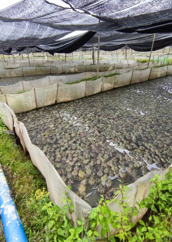 在牛蛙飼養(yǎng)過(guò)程中,為防止發(fā)生互相殘食的現(xiàn)象,每隔一段時(shí)間要及時(shí)將規(guī)格相差較大的個(gè)體進(jìn)行篩選分級(jí),把規(guī)格相同的牛蛙調(diào)整到同一口池進(jìn)行飼養(yǎng),防止大蛙吃小蛙。
