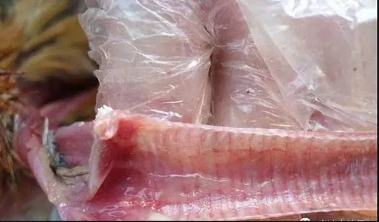 部);風寒感冒由于傷陽,所以初期多不渴不貪水;呼吸道癥狀較沉悶,如呼嚕,其中前期早晨和傍晚氣溫低的時候雞群精神狀態(tài)尤為不振,而在氣溫回升的中午和上午,精神狀態(tài)比較好,甚至給人有“康復”的假象;初期采食量下降較慢甚至不明顯。