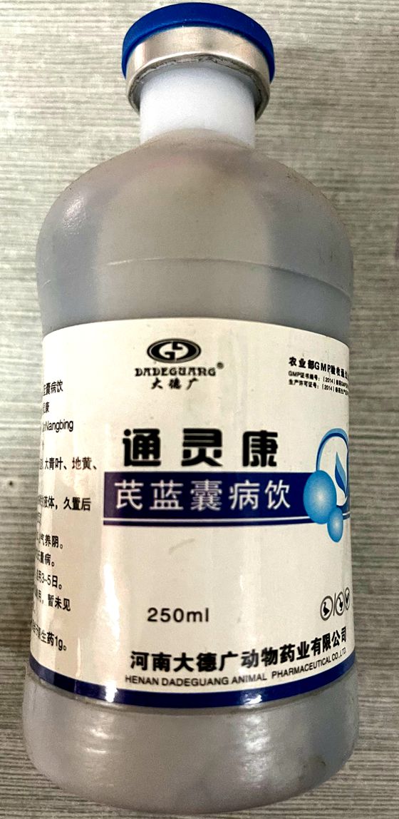 上午通靈康一瓶?jī)端?00斤+肝腎康1瓶?jī)端?00斤集中飲水4小時(shí),連用3天。