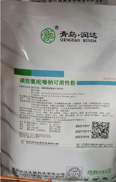 1、30%磺胺氯吡嗪鈉+碳酸氫鈉,各100g可拌料2包(160斤),停水2-3小時,按全天飼料量的1/2飲水量喂水。一天一次,第一天倍量,連用三天。