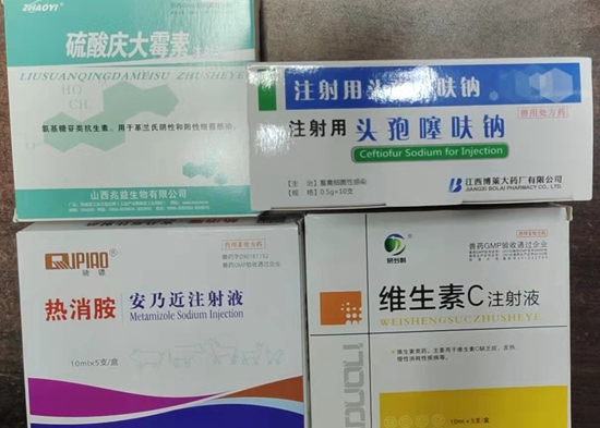 治療方法:慶大霉素5毫升×5支、安乃近20毫升維生素C20毫升、一支0.5g頭孢噻呋鈉,5%葡萄糖生理鹽水500毫升靜脈注射,每日2次。