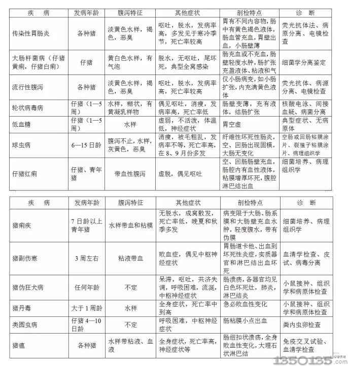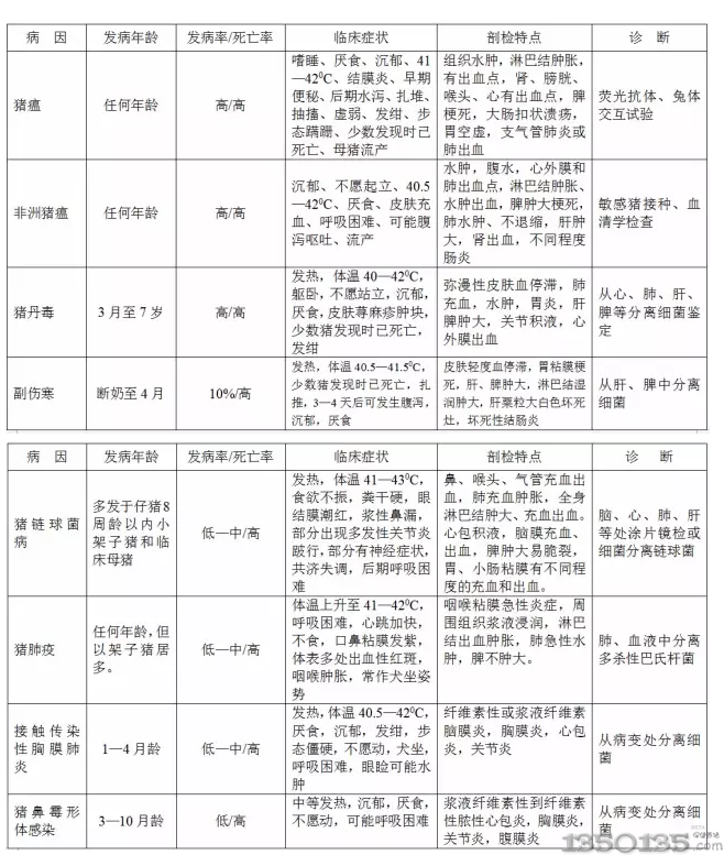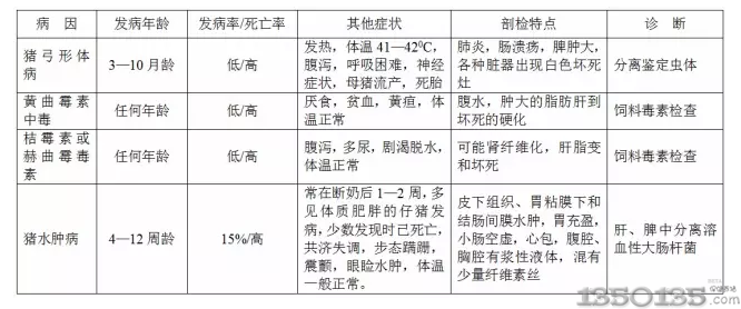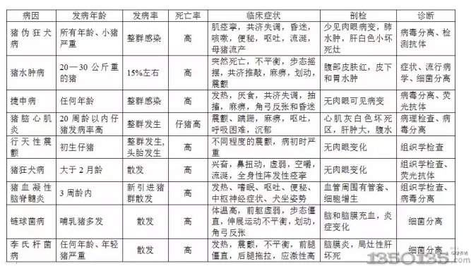 二、豬神經(jīng)性疾病的鑒別診斷表