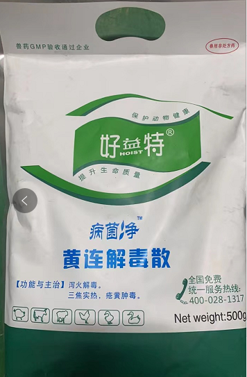 1、1KG脫霉劑+1KG黃連解毒散,拌料1000斤,連用7天。