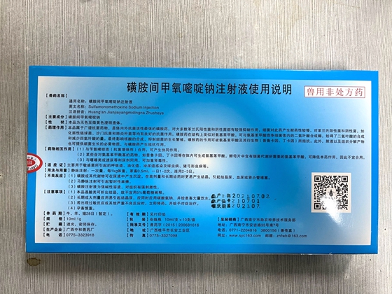 2、防治:磺胺嘧啶注射液靜脈或肌肉注射每公斤體重0.1克,每日2次,連用3-5天,也可用磺胺間甲氧嘧啶每公斤體重0.05克注射,每日2次,連用3-5天。