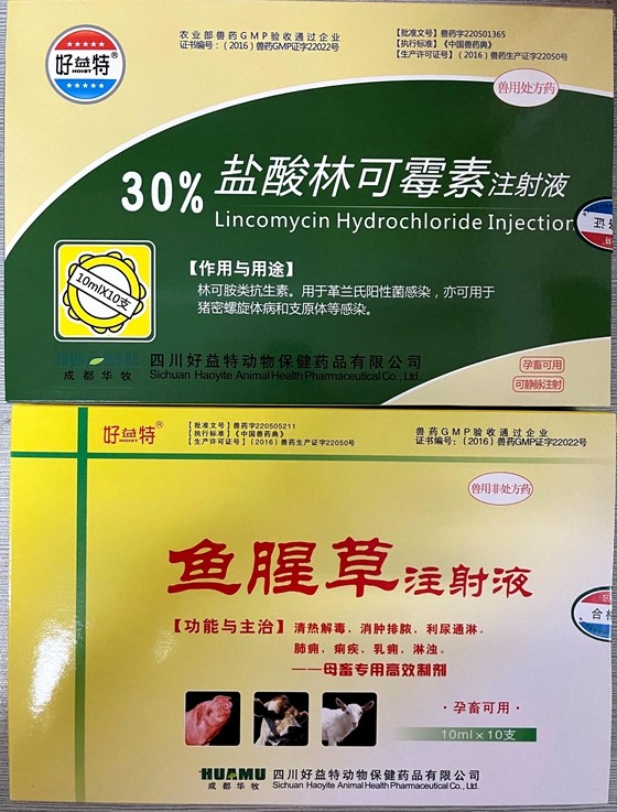 二、母豬產仔怎樣配藥治療新手的話建議肌肉注射,消炎可以打魚腥草與鹽酸林可霉素,每樣一支打一頭,連用3天,有人工助產就配合用宮炎凈清洗子宮,促進子宮恢復。