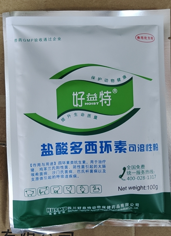 3、定期藥物保健,首選藥物就是鹽酸多西環(huán)素(強力霉素),鹽酸多西環(huán)素是豬場最常用抗血蟲藥,針對附紅細胞體的抗菌效果比其他四環(huán)素類強10倍;該病重在預(yù)防,在夏秋多發(fā)季節(jié),使用多西環(huán)素+恩諾沙星+磺胺間甲氧嘧啶鈉,連續(xù)添加一周,可有效預(yù)防豬場附紅細胞體病。
