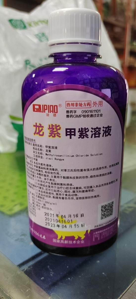 治療:肌注青霉素,用0.1%高錳酸鉀水浸泡發(fā)病仔豬身體1-2分鐘,頭部用藥棉沾高錳酸鉀水清洗病灶,然后擦干、涼干涂上龍膽紫。對(duì)初發(fā)少數(shù)病灶直接涂上龍膽紫,效果很好。
